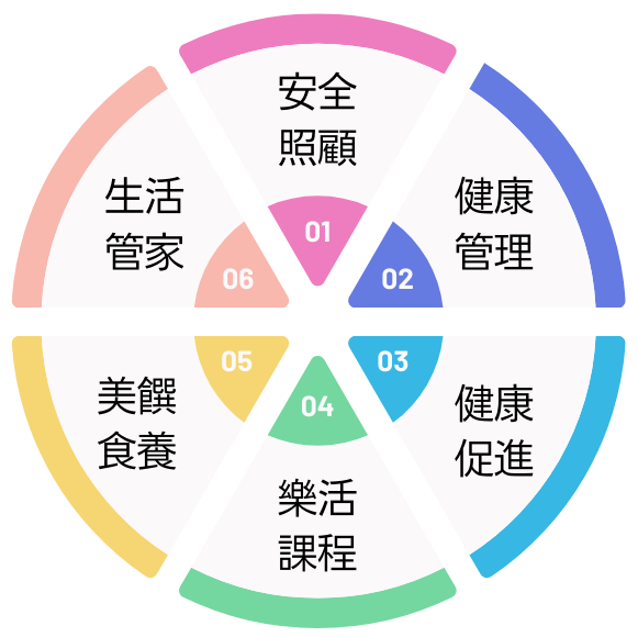 專業貼心的醫護人員、安全舒適的生活環境、綠意盎然的戶外休閒空間,還有精心規劃的季節養生餐點及樂齡活力課程打造屬於住民個人的生活處方箋。 我們提供全人照護、安養樂活、健康促進的生活型態服務,守護住民的綺麗人生。